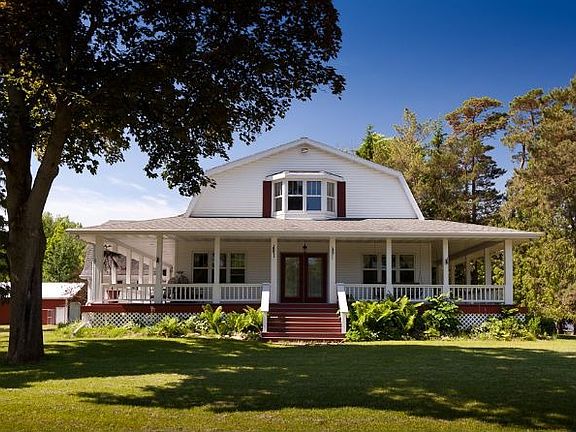 Completely renovated, spacious country home. Original woodwork throughout. Lrg LR, floor-to-ceiling stone FP. Gourmet kitchen. House could be converted to 3 bdrm. Located across from Suamico River with easements to the river. Park your boat along River with easy access to Bay. 40x60 metal pole building, pond and almost 9 acres of woods, just min from town!