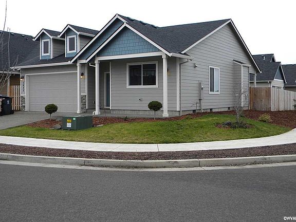 Accepted Offer with Contingencies. Like new single story in the desirable Santiam Riverfront Estates! This home has a nice open floor plan and features include granite kitchen counter tops, S/S appliances with refrigerator included, wood laminate flooring in all main living areas with the comfort and quiet of carpet in the bedrooms. In ground sprinkler system installed, front and back landscaping and covered patios front and back. Easy access to river trail, parks, schools and shopping.