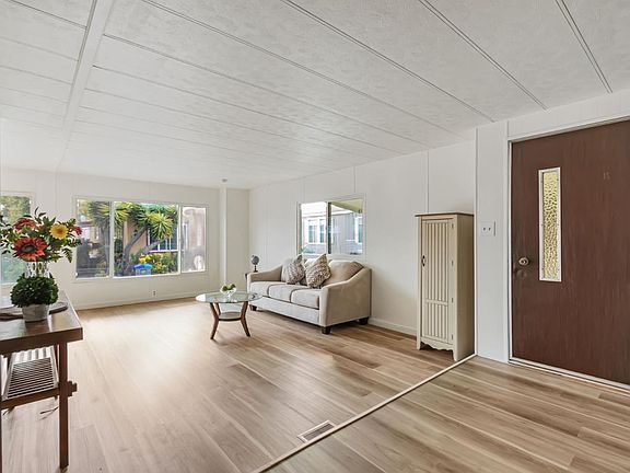 A great opportunity to own in Mountain View near Google. Santiago Villa is a charming mobile home park and one of the more sought after parks in the city. This home features two bedrooms and two baths with a spacious living room and separate dining area. New vinyl plank flooring and paint throughout. There is an abundance of natural light in the home and the kitchen features a new gas cooktop and built in oven. You new home awaits!