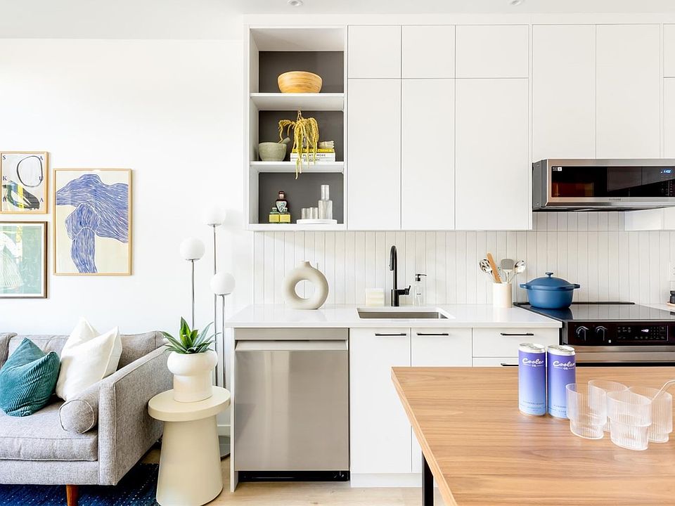 Functional living spacesOver height ceilingsSouth-east facing windowsSpacious patioChef inspired kitchenQuartz countertopsMatte black hardware