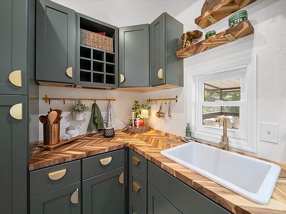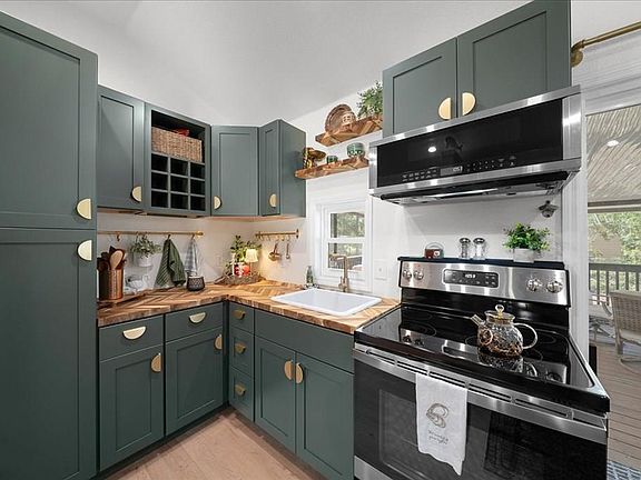 Coastal modern styleCoffee bar areaButcher block countertopsBeautiful lvp flooringOversized screened-in porchQuiet peaceful street