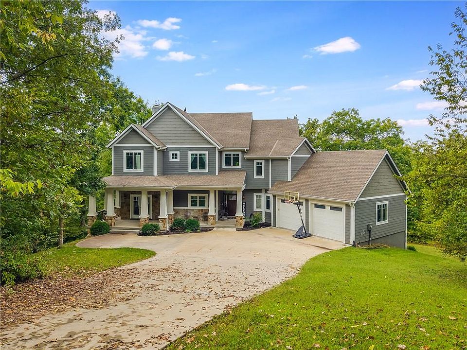 OMG!!! THIS NEVER HAPPENS!! A SECLUDED RETREAT ON 6 PLUS ACRES IN THE HEART OF PLATTE COUNTY OVERLOOKING THE NATIONAL - NO WAY!! A ONE OWNER SANCTUARY BUILT IN 2014 BY CUSTOM HOMEBUILDERS LOUIS & KYLE FREEMAN; THE HOME OFFERS RETREAT AURA WITH THE MODERN CONVENIENCES OF A NEWER HOME. DRIVING BACK TO THE HOME YOU TRANSPORT YOURSELF FROM THE HUSTLE BUSTLE OF CITY LIVING INTO THE SERENTY OF A HOME A WORLD AWAY IN JUST 60 SECONDS. THE CRAFTSMAN STYLE 2 STORY IS EQUIPPED WITH 3 DECKS ON THE BACK OVERLOOKING A HUGE YARD BUFFERED BY TREES. AN EXCAVATED GARAGE AND FRONT PORCH OFFERS A PLACE FOR A WORKSHOP, STORAGE AND SHELTER. INSIDE YOU WILL FIND SOARING CEILINGS IN THE GREAT ROOM WITH STONE MASONRY FIREPLACE, HARDWOOD FLOORS AND OPEN KITCHEN CONCEPT WITH EAT IN KITCHEN. RIGHT ADJACENT TO THE GREAT ROOM IS A PRIVATE ALL SEASON ROOM PERFECT FOR MORNING MEDITATION OR EVENING WIND DOWN. THERE IS A MAIN FLOOR OFFICE THAT COULD EASILY BE USED AS A MAIN FLOOR NON-CONFORMING BEDROOM OR CHILDREN'S PLAYROOM. HEAVILY TRIMMED THROUGHOUT, UPSTAIRS IS A HUGE MASTER BEDROOM WITH MASTER BATH SUITE EQUIPPED WITH TUB AND SHOWER AND NICE-SIZED WALK IN CLOSET. ALL BEDROOMS HAVE ACCESS TO BATHROOMS AS WELL AS BEDROOM LEVEL LAUNDRY. THE BASEMENT IS FINISHED WITH A WET BAR, BUTLER PANTRY, 3/4 BATH AND ANOTHER ROOM PERFECT FOR A HOBBY, OR EXERCISE ROOM, NON-CONFORMING BEDROOM OR A GREAT PLACE TO HOME SCHOOL. IF YOU ARE LOOKING FOR A ONE-OF-A KIND PROPERTY THIS COULD BE THE PLACE!