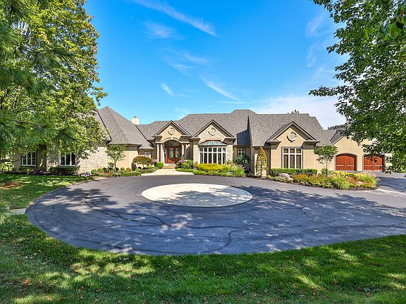Welcome to Your Private Oasis on Omaha Trace! A Masterpiece of Luxury Living nestled upon 4.5 secluded acres within the esteemed Triple Crown Country Club Golf Community. This extraordinary Custom Built Estate showcases unparalleled quality & craftsmanship throughout. Step through the grand marble & limestone entry to 12,000 sqft of architectural brilliance that seamlessly blends classic charm with a contemporary flair. Features 5 BR, 5/3 Baths, 7 FP's, 2 Laundry Rms, 5 Car Gar. 1st Flr offers study, great rm, piano bar, gourmet quartz kitchen w/designer appl, wine grotto, hearth rm, suspended coffered ceiling, walk-in pantry, drop zone. Family Wing w/deluxe primary br, sitting rm, auto shades, coffee bar, his & her WIC - Marble Bathroom, steam shower-wall sprays, and 2 additional BR's w/ensuites. Fin LL Veranda includes media rm, game rm, play rm, exercise rm, 2 more BR's w/ensuites, 2nd Laundry Rm, billiards, caterer's ktcn, & pub w/walkout to outdoor living space w/private park, pergola, bocce ball, firepit, rock garden, gunite pool/spa, pool house w/full kitchen, bar, bath, FP, separate furnace, collapsible glass walls overlooking picturesque lake and golf course views!