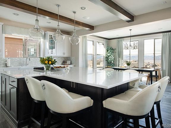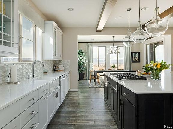 Luxurious living from the moment you step inside this stunning Shea home. Situated on a premier lot w/ majestic mountain views from almost every window. A thoughtfully designed open concept floorpan creates a flow boasting w/ natural light. Enter the home & be amazed w/ the designer touches throughout. Entertain in the kitchen that is a Chef's dream, complete w/ quartz countertops, generously sized island, upgraded appliances & apron sink. Enjoy the extra workspace in the Butler's pantry area w/ a full sized wine refrigerator & cabinetry to store your favorite tequila. The living room allows for the Colorado outdoors to come indoor w/dual sliding doors leading to the covered deck w/ a fireplace. A secondary outdoor living area is perfect for sunsets- the turf instead of grass will stay green all year long. The Master Retreat will not disappoint- stunning views coupled w/ an opulent master bath & two master closets. A spacious loft area & two large guest suites completes the upper level. Note the beautiful exposed beams, accent stone wall, custom staircase, T & G ceilings & upgraded lighting. A main floor bedroom suite w/ attached bath is perfect for guests. Work from home in the lovely office w/ a cozy gas fireplace. Host dinner parties in the spacious dining room. Wash your puppy or kitty in the pet spa bathtub in the mudroom. The garage is insulated & has coated floorings plus room for storage. A professionally finished walk out basement includes a media room, billiard area, bedroom, bathroom + extra room for plenty of storage. The home is located in the award-winning Backcountry gated community. Where you can walk to the Sundial House to use the resort-style outdoor pool, catch up with neighbors in Pikes Pub & lounge areas. Visit the demonstration kitchen & community rooms, get your sweat on in the fitness & movement studios, or simply relax in the spa treatment rooms. The Sundial House even hosts concerts& movie nights at the outdoor amphitheater.