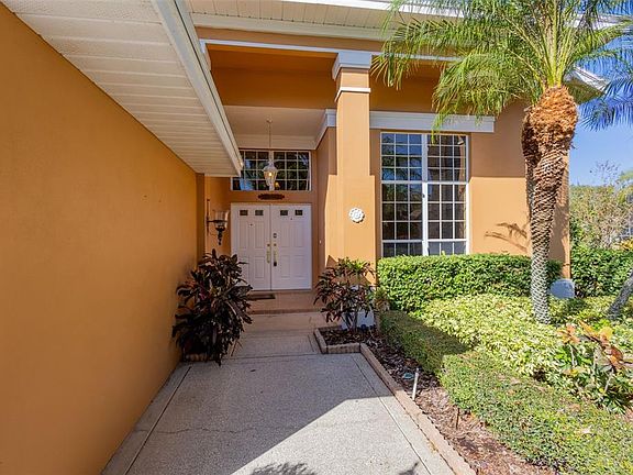 Custom built 4 bedroom (2 are Primary Suites), 3.5 bath, 3 car garage, pool home on a small, well-kept cul-de-sac in a very desirable community. Property backs up to a lake/pond for a retreat-like setting in the back. The home boasts of large rooms and vaulted ceilings throughout. The main PRIMARY suite features its own gas fireplace, sitting area, wet bar, a very spacious walk-in closet, en-suite bathroom with a garden tub and separate shower. It also features a private entry to the pool through a large pocket slider glass door. The second primary suite is located in the middle of the home, and also has its own walk-in closet and en-suite bath. Two additional bedrooms and bathroom are located on the other side of the home. The kitchen is conveniently located in the center of the home, equipped with stainless appliances and a natural gas stove. The kitchen opens to the large family room including another gas fireplace, an eat-in breakfast room with sliding glass doors to the pool. In fact, this home features 5 exits to the pool and lanai. The formal living and dining room have high-end polished porcelain tile floors. All bedrooms have carpet. The main living areas feature hard wood floors. Caged pool and spa were resurfaced several years ago. The rooms are larger than the measurements provided in the listing. Roof - 2020, AC – 2017. There are two HVAC systems in the home, with multi-thermostats for room comfort. This community is in close proximity to hospitals, churches, shopping, restaurants, approx 8 miles to the beach, and 10 miles to the St Pete/Clearwater Airport with easy access to I-275 and area bridges.