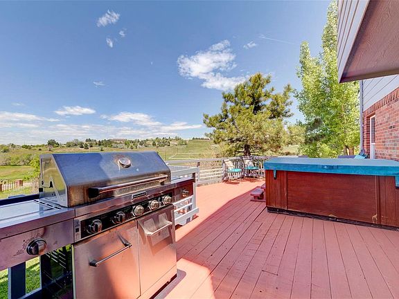 Absolutely awesome views of the Rocky Mountains from inside the house to out on the deck and patio from Longs Peak to Pikes Peak! LOCATION! LOCATION! LOCATION! Back of subdivision with very low traffic on cul-de-sac! Mulit-level deck with lots of seating space to entertain and waterfall with pond to relax while enjoying the spectacular Colorado Sunsets! This is a beautiful Two-Story home with walk-out basement has been updated with Master Bath heated floors with timer; Granite Counter tops in Kitchen; Hardwood Floors on Main Level; New Amerimax Windows with a transferable 10 year warranty; Newer Roof and Gutters; Newly Painted Exterior and Deck! Huge Master Bedroom with sitting area, large Master Bath and Walk-in Closet! Minutes to Parker's Historic Mainstreet, Farmers Market, Wine Walk, Parker Days and many more town activities. Don't let Dad miss out on this great home for Father's Day! He will enjoy grilling on this deck with those views!