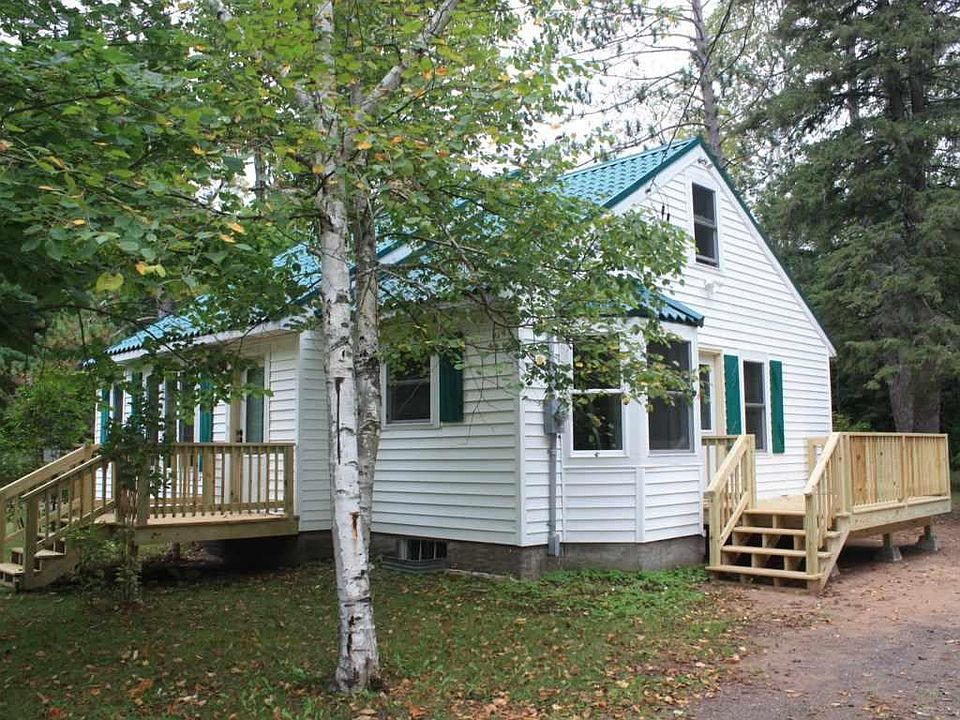 Cottage look- across from upper Lake St Croix - low tax base but enjoy the water - excellent swimming/skiing - close to town. Cute 1-1/2 story home with many updates. Offers Maple wood floors, 2 wood burning fireplaces, 1st floor laundry, some walls accented in pine walls & log railing crown molding, rock faced fireplace, new metal roof. 2 bedrooms on main floor. Relaxing sun room. Cute kitchen. Spacious deck.