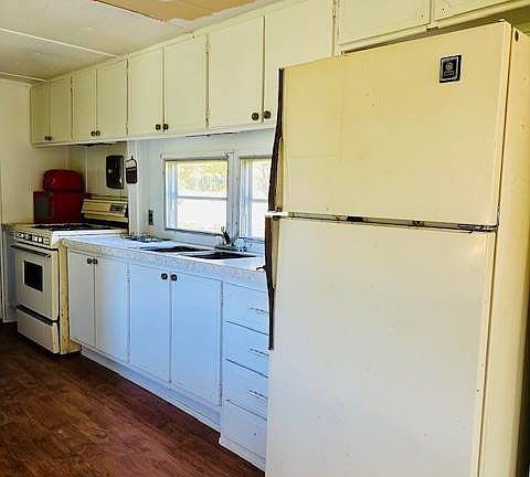 This mobile home sits on 3 lots totaling approx. a half acre with private septic and city water. 1 or 2 bedrooms plus 1.5 baths with open concept living/dining area. Includes a storage shed and a detached 2 car garage. This property could also be an investment opportunity that could be income producing as a rental.