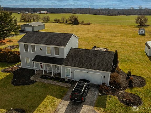 This Colonial home has it all. Situated on 2.18 serene acres gives you that country-feel yet it’s still near I-675 & 70 for easy access to WPAFB, the airport, shopping & entertainment! The owner has had over $55,000 in professional upgrades in the past several months. See the extensive list of improvements. The 3 living spaces is perfect for today’s lifestyle. The family room is open to the sunny, updated kitchen with newer appliances. The oversized living room is open to the dining room; perfect for large gatherings. You’ll likely spend most of your time in the huge 28x12 Rec room which has one of two new patio slider with built-in blinds. Upstairs boasts 3 spacious bedrooms, 2 full baths & convenient laundry. The Primary bedroom has a ton of closet space and an updated bath. Enjoy the peaceful outdoors from either the huge, updated deck or the paver patio. The attractive Tiki bar is perfect for entertaining. There are 3 oversized Amish-built outbuildings for extra storage space. The 2-car garage has an office space that could easily be removed. See the 3D & Cinematic video. Call now for a private tour.