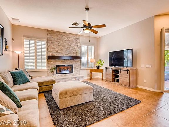 1-STORY, PULTE HOME LOCATED IN THE HEART OF SUMMERLIN! 4 BEDRM,3 BATH+OFFICE, GATED COMMUNITY, CUL-DE-SAC LOCATION, FABULOUS CURB APPEAL ,NEWLY PAINTED INTERIOR, BEAUTIFUL STACKED STONE FIREPLACE W/ QUARTZ HEARTH, BREAKFAST BAR, STAINLESS APPLS, CORIAN COUNTERS, WOOD SHUTTERS T/O, CEILING FANS T/O, SEP MASTER, PRIVATE BACKYARD, HUGE COVERED PATIO, HEATED POOL/SPA, PALM TREES, POTTED PLANTS, SURROUND SOUND, LUSH LANDSCAPING =AN ENTERTAINS DREAM!