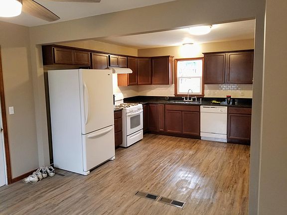 4 bedrooms on one level with recently finished hardwood floors in all. Many recent updates including kitchen cabinets, luxury vinyl floors in kitchen, new windows, newer siding, newer roof, newer mechanicals and freshly sanded and re-finished oak floors! Remodeled family room down with den area and sliding barn door with distressed wood accent wall! Pet policy allows one dog up to 25 lbs. No cats or other pets please Huge back yard- perfect for entertaining. Remodeled Attached two car garage with opener. Utilities NOT included in rent. 12 month lease. No Smoking