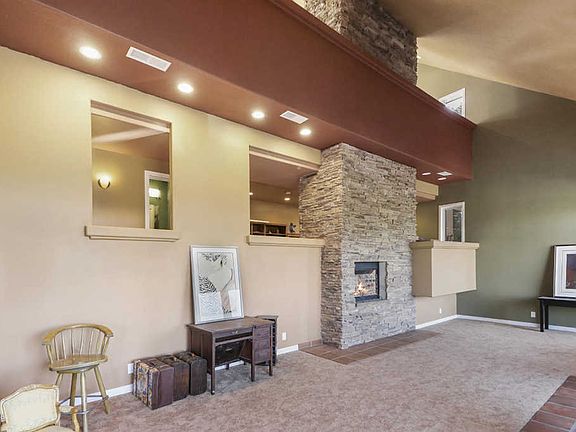 This amazing custom estate in Home Acres features over 3700 square feet of living space on .75 acres of land overlooking Moorpark. As you enter you are greeted by a gorgeous entry way with a chandelier and to the right, a large family room with 28' high vaulted ceilings, fireplace and stunning views. Continuing up-stairs you have a game room with a fireplace as well as your chef's kitchen with stainless steel appliances and large range hood, living room, breakfast room and formal dining both with the spectacular views as well. Off of the breakfast room you exit to an open patio with in-ground pool and BBQ area. Upstairs to the top level you have two bedrooms with a full bathroom and a master bedroom with a fireplace and relaxing patio, again with great views. The master bathroom features custom travertine tile, a soaking tub, shower and plenty of closet space. The home also features LED recessed lighting throughout, a three-car garage, a large storage area downstairs which would be perfect for a wine cellar and ample parking space out front. Additionally, the home is zoned for horses and farm animals. This is a home you must see in person!