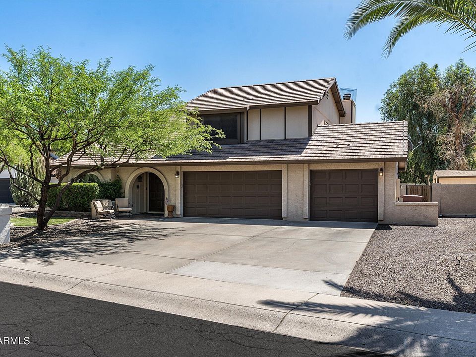 Tucked away in a private oversized cul-de-sac in one of the most desirable ZIP codes in the state, this 4 bed, 2.5 bath home with a 3-car garage, RV/trailer parking, and NO HOA is a rare find that checks every box—and then some. But the real magic? The backyard. Imagine a Pebble Tec diving pool sparkling under the sun, surrounded by brand-new, lush artificial turf for year-round greenery without the upkeep. Professionally designed landscaping includes mature privacy hedges and newly planted trees that create a serene, secluded retreat. From the moment you arrive, you'll be wowed by the brand-new front landscaping with artificial turf, paver walkway, and fresh stucco + paint on the mailbox. Inside, you'll be welcomed by fresh interior paint, rich dark cherry plank wood floors, refinished downstairs cabinetry, and a wood-paneled feature wall in the living room for that designer touch. The sunken living room leads into a beautifully updated eat-in kitchen with granite countertops, newer stainless steel appliances (including fridge, microwave, and dishwasher), new blinds, and views of your backyard oasis.