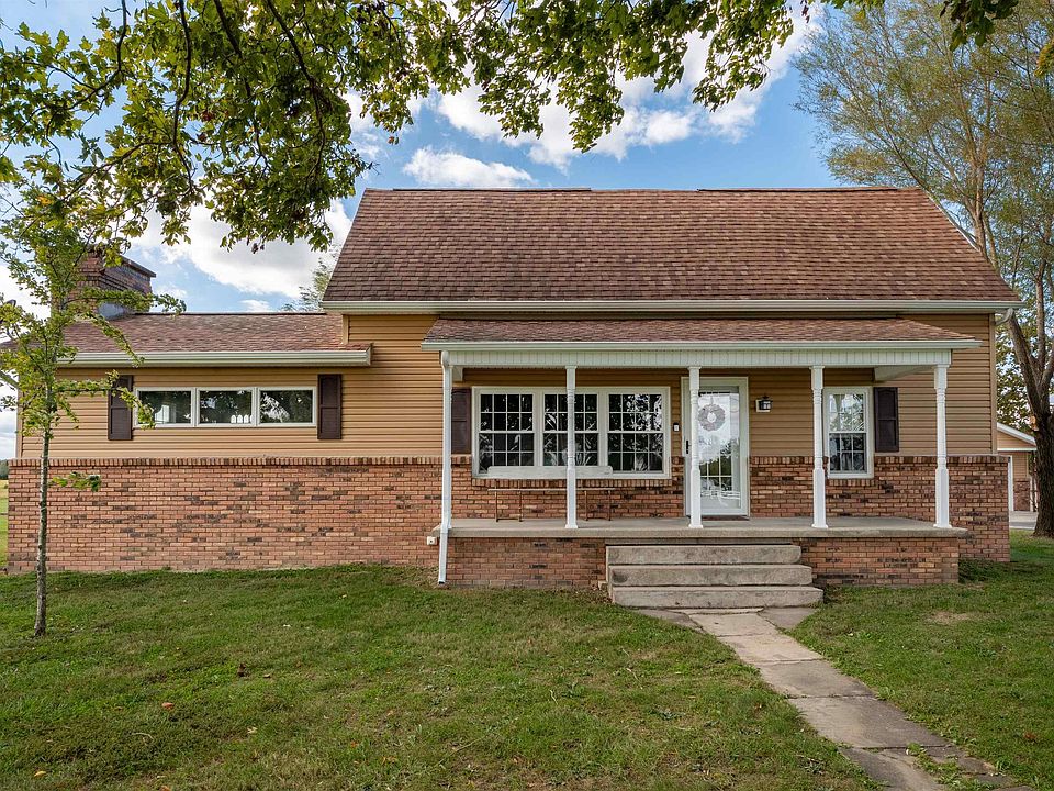 A little bit of country, and a whole lot of space. This farmhouse, built in 1880, has all of the modern amenities and still has maintained the farmhouse feel. Natural light beams in the front windows of this home showing off the beautiful view of the farm ground across the street, and the wood-burning fireplace in the family room is just a peak through the wood and glass doors and gives a separate living space for entertaining. The master bedroom on the main floor adjoins the full bath which conveniently has the washer and dryer. The kitchen in this home has been expanded over the years and could hold a massive dining room table for the whole extended family to eat at, and even a nook for a desk space, all the kitchen appliances will stay with this home. There are 2 bedrooms upstairs, one fully renovated with new flooring and one in the process with a half bath. There is a 2 car detached garage with electricity and a shed perfect for potting, crafting, or storage. The sellers have a bid for a new HVAC system and will be happy to give a credit or check at closing for that.