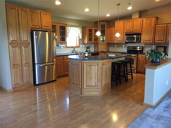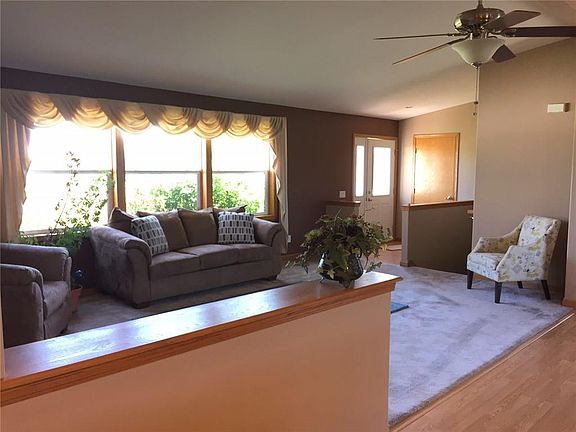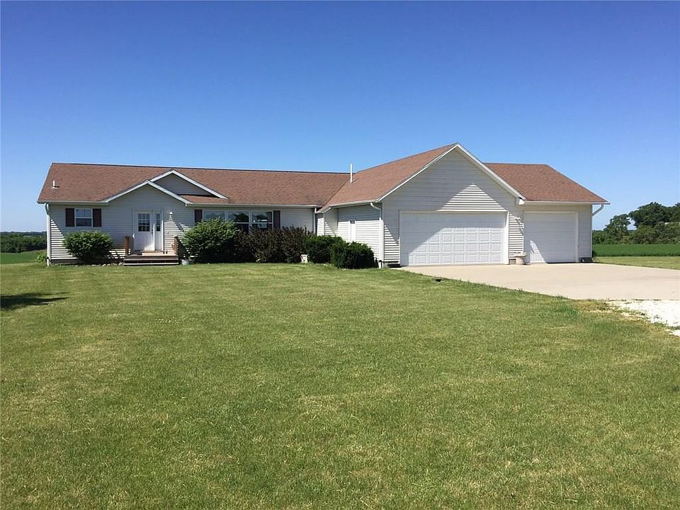 Spread out in this spacious 5 bedroom 3 bath walk out ranch home situated on 3.8 acres m/l. This very well kept home has aprox 3676 square feet of finished space. The main level boasts an open floor plan with large kitchen with tons of cabinet & countertop space with center island breakfast bar- ss appliances included. The living room is huge & has great natural light. The dining area overlooks the deck with a stunning view to the southwest - perfect for watching thunder storms roll in! The master suite has a jacuzzi tub, separate shower, dual vanities & walks out to a sunroom with like new hot tub! There are 2 additional bedrooms, full bath, & laundry/mudroom on the main level. The basement is finished with tons of windows, huge family room area, wet bar, 2 bedrooms with egress windows & full bath. There is a huge storage room with built in shelving. The 42x154 hoop building is great for storage, or could be rented out or removed. There are no covenants on this property. Must See!!