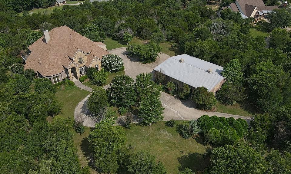 BEAUTIFUL custom home and large workshop on 2.8 acres in gated Boling Ranch! This PRIVATE property is heavily treed, surrounded by nature, and has AMAZING long-range views! Wonderful open floorplan with generously sized rooms. Large eat-in kitchen, breakfast room, and dining room. Three living areas include main living room, downstairs den which could be a FABULOUS home office or 5th bedroom, and a huge game room upstairs. Master bedroom with see-through fireplace is downstairs. Three additional bedrooms and 2 baths upstairs. The insulated workshop has HVAC and will accommodate a large RV! Take advantage of the community pool! Home has a new roof! Country living minutes from Ft. Worth. 2021-08-23
