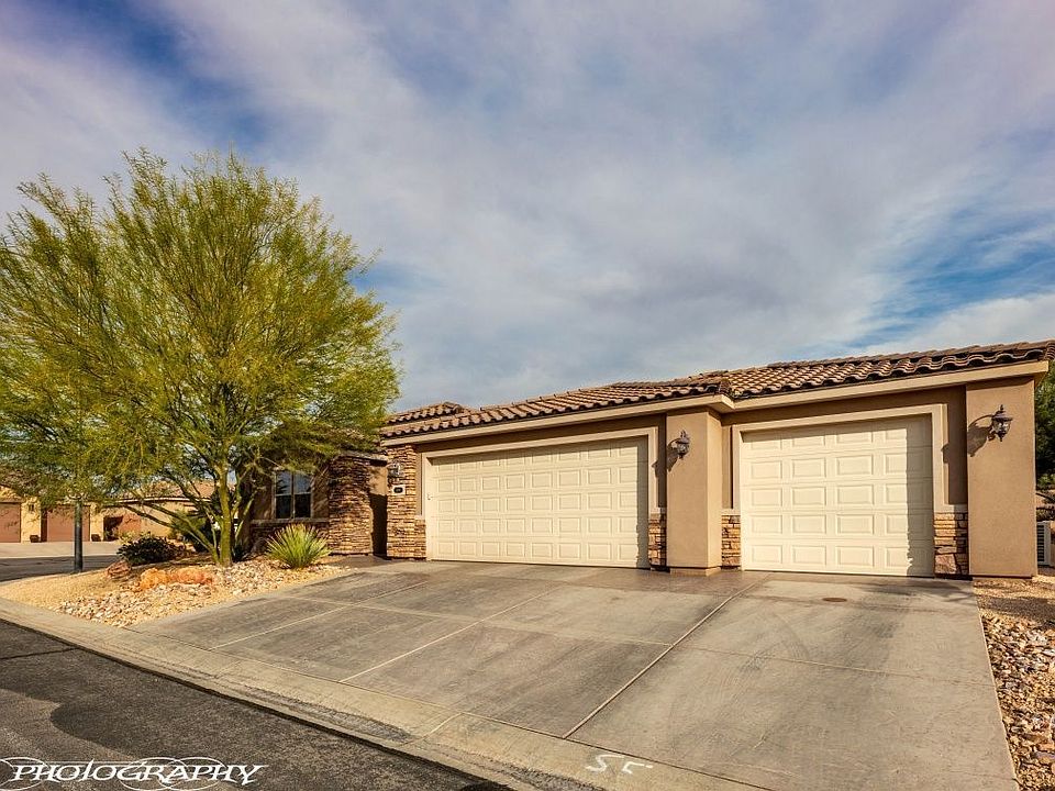 Beautiful corner lot in Tuscan subdivision. Corner lot with a beautiful home. The front walk way leads up to a custom made rod iron entry which opens to a private courtyard. The home has amazing kitchen with a walk in pantry and plenty of storage an prep space with a dining area with lots of room to entertain. Living room has a built in cabinet with fireplace and an oversized slider which leads to a wonderful private covered patio area with electric shade. The primary bedroom is over sized and has a large bathroom/dressing area with large walkimg closet an extra large walk-in shower with dual shower heads. The two additional bedrooms and third bathroom are located on the other side of the house with a private entry via a door to the courtyard. There is a three car oversized garage which in cooled with its own mini split air cooler. All doors are 36 inches wide making it handicapped accessible. The yard is fenced with a block wall and had has custom iron gates on both sides. WIndows have exterior shades for added energy efficiency. Owner/Agent