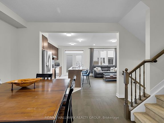 Welcome to this beautiful 3-bed, 4-bath townhouse, ideally situated just minutes from Kanata's tech hub, central Stittsville, and the Trans-Canada Highway/Queensway. The open-concept main floor features 9 ft ceilings, abundant natural light, and a smart layout with a foyer closet and conveniently located powder room near the inside entry. The kitchen is thoughtfully upgraded with quartz countertops, stainless steel appliances, a stainless steel undermount hood fan, tall upper cabinets, and an upgraded faucet. The living and dining area offers hardwood flooring, pot lights throughout, a beautiful fireplace, and direct access to the backyard. Upstairs, you'll find a spacious primary bedroom with a walk-in closet and a spa-inspired ensuite featuring a walk-in shower. Two additional bedrooms and a full bathroom complete the second level. The fully finished lower level adds even more living space, including a full bathroom, large windows, and ample storage. The neighbourhood surrounding 1076 Curraglass Walk offers a wide selection of schools, parks, and restaurants. The Canadian Tire Centre and Tanger Outlets Ottawa are just minutes away-and even within walking distance. This home is a fantastic choice for outdoor enthusiasts, shoppers, professionals, and pet lovers alike.