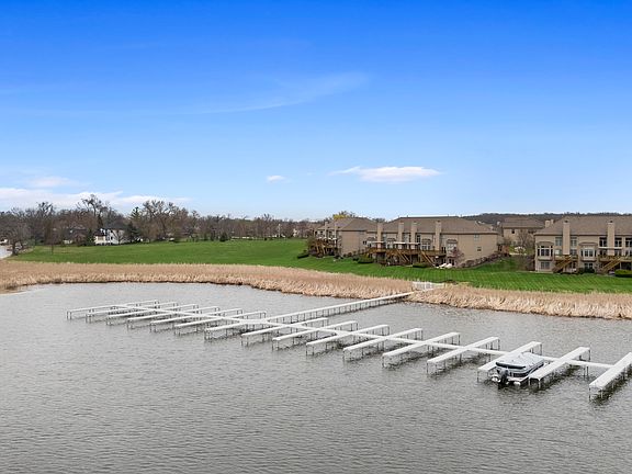 Beautiful Chain'O'Lakes waterview townhome in the lovely neighborhood of Woodland Ridge with picturesque sunset views of Lake Marie and amazing nature and wildlife. This home features an open floor plan with dining and great room having volume ceilings, hardwood floors and floor-to-ceiling fireplace all overlooking the lake. The sliding door leads to the outdoor deck where you can relax and enjoy the water views or entertain guests. The kitchen has white cabinets, tile backsplash, large pantry, breakfast bar and Kinetico reverse osmosis water filtration system. Off the kitchen area is the laundry room with work tub, half bath and office/den. In the first-floor primary bedroom is a tray ceiling, large windows with a view of the lake, along with a luxury bath featuring a Kohler jetted tub, double sinks, glass walk-in shower, walk-in closet and separate room for commode. The second floor has a spacious loft with a view of Lake Marie, 2nd bedroom with sunrise views and walk-in-closet, 3rd bedroom/2nd office, storage closet and a full bathroom with shower/tub. The English basement includes a finished family room, Library/play area, room for 4th bedroom with walk-in-closet and full bathroom with shower and a large storage/workshop. NEW WINDOWS MARVIN 2023, NEW DRIVEWAY 2024, ROOF 2019, AC AND FURNACE 2019, VINYL PLANK FLOORING IN PRIMARY 2024 NEW WATER FILTER 2024, NEW DECK IN SUMMER 2025, NEW PIERS INSTALLED 2024. Too many updates to list! Boat slip available for purchase.