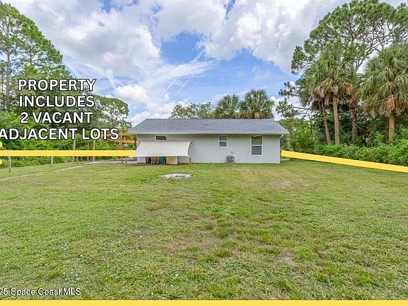 Perfect starter home w/ land to grow! This 3b/1b Palm Bay home sits on a .69-acre property that includes two buildable lots - a rare opportunity for expansion, income potential or future resale. Smart in design, the home features a front-to-back layout that flows from living room to kitchen, w/ all bedrooms & bath down the hall for added privacy. The eat-in kitchen includes a laundry area & all the essentials you'll need. Tile floors, ceiling fans, impact windows, new roof 2023 & two backyard sheds add to the everyday convenience. Whether you want to live small, build big, or hold for future value, this versatile property offers space, flexibility & a hint of ''country in the city'' charm. Make an appointment to see it today!