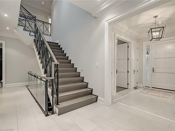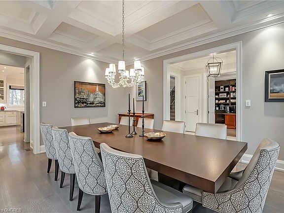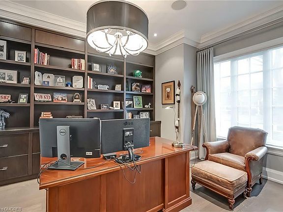 Warm and elegant, welcoming and classic best describe this gorgeous custom built stone home in Morrison/Eastlake pocket of southeast Oakville! On the south side of Melvin, it backs onto a wooded area that provides privacy. A stunning masterpiece designed by Richard Mann and custom built with meticulous detail. Just a short stroll to shopping conveniences or into the downtown area for its upscale restaurants and boutiques! Over 7,215 square feet of luxurious living over three floors! Enjoy a seamless transition throughout the principal rooms and appreciate it's warmth as a family home and it's ability to entertain in style! Open concept gourmet kitchen with custom cabinetry, large waterfall island with seating and top of the line appliances, with generous breakfast room and walk out to private rear yard. The great room is the heart of the home and offers a vaulted ceiling with stone wall and fireplace as its central focus. You will be drawn outside into the covered portico for three season enjoyment under it's vaulted ceiling, curl up with the dog and find your spot to relax. A separate formal dining room and servery offers your family and friends a wonderful setting for memorable meals. The den/office creates a work from home environment with custom built ins and generous area for your desk. The second level has four bedrooms, all with ensuites/shared bathrooms. The primary bedroom is warm and inviting, with it's fireplace, custom shelving and generous walk in closet with custom organizers. The primary ensuite feels spa like, clean lines and high-end finishes. The stand alone soaker tub adds style! The lower level adds 2,751 square feet of fully finished areas, all thoughtfully planned and meticulously executed. The theatre room will be enjoyed by family and friends with room for everyone! Workout in your own gym with room for all your equipment. A massive games and recreation room with lounging, gaming and entertaining areas complete the lower level.