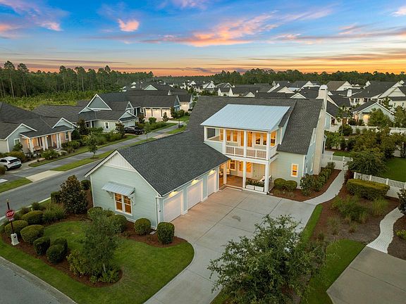 This refined residence in Watersound Origins is a masterclass in outdoor living, set on a private expansive lot that allowed for a custom enhancement of the acclaimed Weatherly floor plan by Romair. With one of the largest private pools in the community, a raised spillover spa, summer kitchen, wood-burning fireplace, and retractable back porch screens, the outdoor experience is both luxurious and versatile. Inside, more than 3,300 square feet of living space has been thoughtfully finished with 10-ft. ceilings, 8-ft. solid core doors, wide oak hardwood floors, shiplap detailing and crown molding throughout. The grand kitchen was expanded exclusively for this lot and offers a 48-in. Thermador gas range beneath a custom hood, dual sinks, quartz countertops, under-cabinet lighting, a Liebherr paneled refrigerator, a KitchenAid ice maker, a beverage cooler, and island with seating for 6. A gas fireplace with an 8-ft. mantel anchors the open living room, while French doors lead to a covered porch with IPE decking, three ceiling fans, a mounted TV, and a fireplace with crushed shell surround. The main-level primary suite offers views of the backyard and pool, dual granite-topped vanities, a large walk-in shower, two spacious walk-in closets and direct porch access. Upstairs, a bonus living area opens to a second covered porch with IPE decking and wood-paneled ceiling. Each of the three guest suites has a private ensuite bath with marble or stone finishes, including walk-in showers with river rock flooring and custom vanities. Additional highlights include a massive 2.5-car garage (26x33) with shelving, a secondary refrigerator and storage, a Generac whole-home generator, tankless water heater, impact-rated windows and doors, and pre-wiring for surround sound and smart home features. The fully fenced backyard is framed by lush landscaping, with magnolia trees, landscape lighting and a brick paver patio. As part of the Watersound Origins community, owners enjoy access to the Village Commons pool and fitness center, tennis and pickleball courts, the Davis Love III-designed golf course, miles of trails, and kayak launch on Lake Powell. Owners have the option to upgrade to full Watersound Club membership for exclusive beach, golf and dining access. All just minutes from 30A, Watersound Town Center and the best of the Emerald Coast.