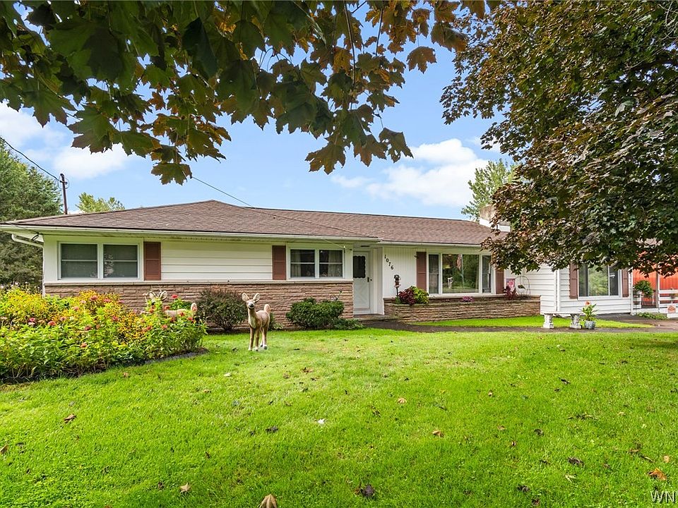 ONE LEVEL LIVING WITH FINISHED WALK-OUT! 1800 SF Ranch Style Home includes 4-bedrooms and 2-baths including fully-finished, walkout basement. Electric, Gas PLUS Water/Sewer only $316 per month! Interior is open and bright with thermal windows, modern kitchen and baths. Also, TWO outbuildings and TWO driveways. Garage outbuilding measures 30'x40' with TWO full levels plus loft; over 2400 SF garage. Storage outbuilding measures 20'x30', 600 SF, both are well maintained with modern roofs and siding. Garage has underground drainage. Yard measures 170' x 209', a whopping .82 acre, with underground electric pet fencing. Selling with modern range, refrigerator, microwave, disposal, dishwasher, washer and dryer! Also, a wood burning fireplace with stone surround and a delightful open porch, 192 SF, completely finished with ceiling and outdoor carpeting. Highest and Best Offers through SUNDAY, 11/20 @ 5PM! Minimum Bid $200,000!