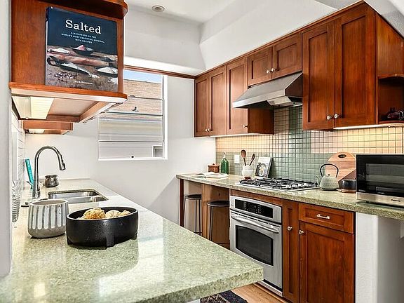 Remodeled and move-in ready, in-unit laundry, multiple private balconies, 2-car gated parking with extra storage, central AC, tons of natural light throughout, plenty of character and charming design details, and low monthly HOA fees that include earthquake insurance and hot water. All within a beautifully maintained, secure building with amazing curb appeal and many recent updates including a newer roof, water heater, and exterior paint. Contact us to schedule a showing.