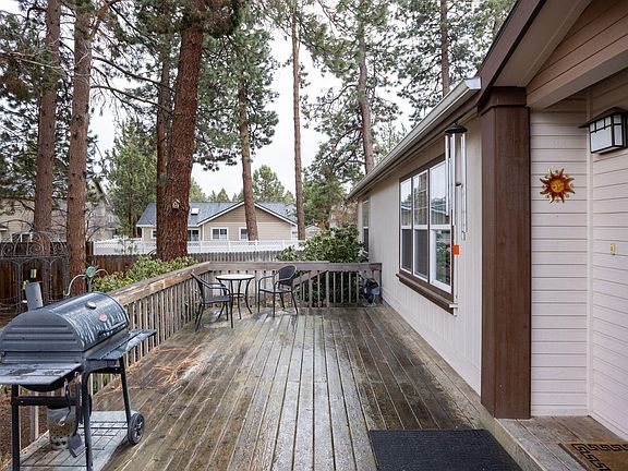 This 1782 sq ft, 3-bedroom 2 bath 1992 built manufacture home offers a serene setting with cul-de-sac privacy while bordering the trail leading to the Larkspur community center. The property boasts a well-maintained interior with primary separation, formal living room, spacious kitchen and relaxing tv room with wood stove for chilly nights. Outside, garden enthusiasts will appreciate the abundance of flowering bushes and plants adorning the almost quarter-acre lot. Enjoy outdoor living on the large deck surrounded by mature pine trees. The detached double car garage includes 240V power and a heated and insulated room in the back for added versatility. Experience the charm and tranquility of this lovely home