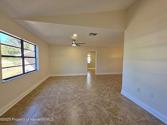 Spring Hill 3 Bedroom Remodeled Home 2 Full Bathrooms And A 2 Car Garage- Enter The Home To The Tile Foyer- Vaulted Ceilings- Formal Living And Dining Rooms- Eat In Kitchen With Quartz Counter Tops Soft Close Drawers And Cabinets, Breakfast Bar And A Pantry- Plus A Family Room- The Primary Bedroom Has French Doors, Recessed Lighting, Walk In Closet, Quartz Counter Tops, Dual Sinks And A Tiled Shower- The Lanai Has Heat And Air For A Total Of 1960 Sq. Ft. Of Living Area- Inside laundry Room With A Wash Tub- Guest Bath Has Quartz Counters And A Tile Tub- Vinyl Fenced Yard--The Following Are New- Roof, AC Units, Water Heater Interior Paint, Ceiling Fans, Kitchen And Bathrooms, Tile Flooring, Light Fixtures, Sinks And Commodes- Like A New Home- Open Floor Plan- Septic pumped December 2025 - Call Today For A Showing.