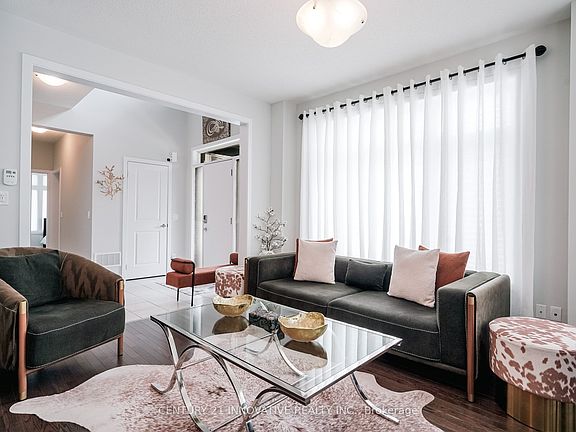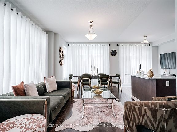 Welcome to this stunning corner townhouse in Oshawa's newly developed Kedron community by Minto. Built just 1 year ago and offering 2,261 sq ft of thoughtfully designed living space, this home blends modern finishes with family functionality. The main floor features a guest suite with a full bathroom, perfect for in-laws or visitors. Smooth 9 ft ceilings and large windows create a bright, airy atmosphere, while the open-concept living, dining, and kitchen/breakfast area makes entertaining seamless. The kitchen boasts stainless steel appliances, ample cabinetry, and plenty of counter space. Rich hardwood flooring flows through the main level, with cozy carpeting in bedrooms and basement. Upstairs, you'll find three spacious bedrooms and two full bathrooms, including a huge primary retreat with a walk-in closet and spa-inspired ensuite. One of the bedrooms even features a charming Juliet balcony. For convenience, the laundry room is located on the second floor. The professionally finished basement by the builder offers an additional level of living space with 8 ft ceilings, ideal as a recreation room, office, or gym. As a corner unit, this townhouse enjoys an abundance of natural light and extra privacy, making it feel more like a detached home. With its generous layout, its perfectly suited for a young family or multi-generational living. Nestled in Kedron, one of Oshawa's most desirable new communities, you'll enjoy proximity to parks, schools, shops, and easy access to major highways. This is not just a home its a lifestyle opportunity in one of Durham's fastest-growing neighborhoods.