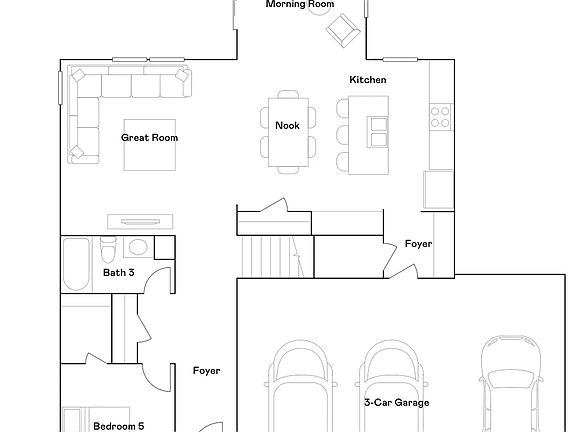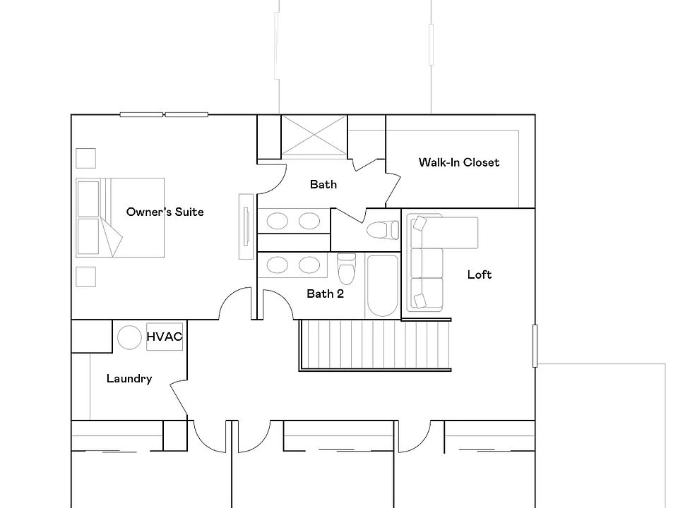This first level of this two-story home offers a flex room as an ideal space for overnight stays. The Great Room, kitchen and dining room can also be found on the first floor, arranged in an expansive floorplan. Upstairs, all four bedrooms await, plus a loft offering additional living space for the entire family.