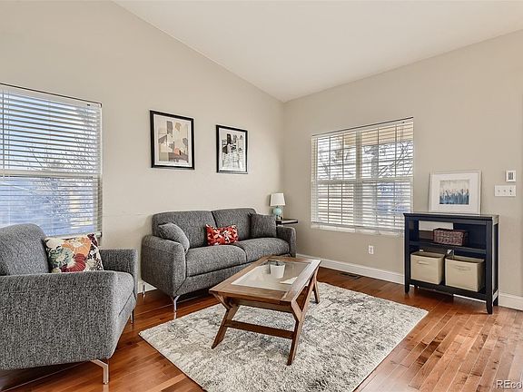 An enormous yard garnished with mature trees engulfs this charming split-level home, as natural light canvases the interior lined with handsomely finished hardwoods. On the main-floor, a vaulted ceiling extends high above the living room and stretches atop the eat-in kitchen serenely trimmed with light-finish cabinets, stainless-steel appliances, a corner sink and pantry. Steps below the dining area, a lower-level refuge is enriched by a gas fireplace, extended mantel/window ledge for displaying heirlooms and built-in storage; plus, access to the backyard retreat garnished with raised garden beds and a utility shed. A powder room sits among garage access and another set of stairs reaching the partially-finished basement with spacious den and utility room. On the upper-level, a brief landing produces a primary suite with walk-in closet and updated ensuite with jetted tub and custom vanity with granite countertop. Among a pair of secondary bedrooms is a hall closet and full-bath with similar finishes as the primary ensuite. Just steps from the home is access to Sulfur Creek Trail and vast acreage of open space; plus, close proximity to iconic Downtown Parker with restaurants, retails and O Brien Memorial Park.