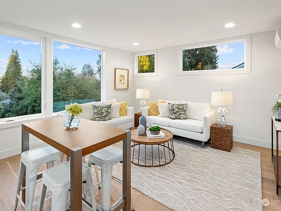 New Construction in community of 3 new homes! Lovely detached 2 bedrooms/1.75 bath with tasteful designer choices throughout. Open living/dining with wide plank flooring. Bright open kitchen offers Fisher & Paykel appliances and Quartz counters. Hardwoods continue up the stairs which offers a private deck, primary suite with Lake views, 3/4 bath and walk-in closet. Convenient upper level laundry. Lower level bedroom, full bath, + slider to private fenced yard and storage. EV ready garage + off-street parking stall next to garage. Mini-splits for heat & AC. Excellent Matthews Beach location!