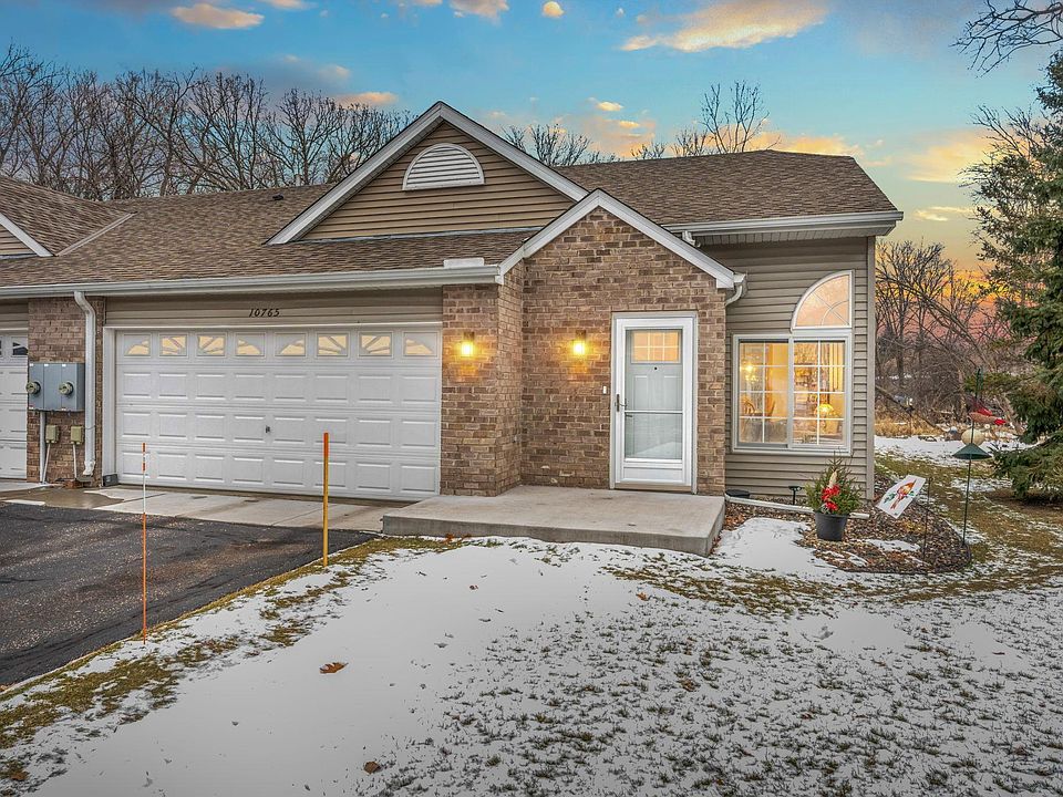 Immaculate one level townhome with many updates throughout! This meticulously maintained home offers open living spaces filled with natural light, a galley kitchen with pantry, and a cozy sunroom with fireplace that leads to a peaceful private patio overlooking the woods! Two spacious bedrooms and two baths, a large laundry/mudroom with ample storage that leads to an attached two car garage. The many updates here include a new furnace and new air conditioner (2022), new Anderson windows, newer roof, water heater (2017), updated paint and interior lighting. Conveniently located to highways, Coon Rapids Dam, and walking and biking trails!