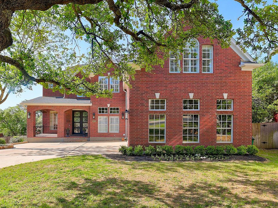 Discover the rare opportunity to own the largest home currently available in Canyon Creek, one of NW Austin’s most desirable neighborhoods. This spacious 5 bedroom, 3 bathroom residence offers 4,345sqft of living space and is the only property on the market with this size, a sparkling pool with spa, and direct access to the greenbelt. Zoned to highly rated Round Rock ISD, this home combines location, privacy, and comfort with the best of Austin living. Timeless curb appeal begins with the stately red brick exterior, covered front porch, and side entry three car garage with an oversized driveway that provides extra space for guests and family activities. Inside, natural light fills the home and the open floor plan is designed for both daily living and entertaining. The main floor features a private guest suite with full bath, ideal for in laws, long term visitors, or a dedicated home office. A chef’s kitchen with walk in pantry and breakfast area opens to the family room with fireplace and serene greenbelt views. Upstairs, the oversized primary suite feels like a true retreat with a spa style bathroom, massive walk in closet, and a private balcony overlooking the treetops. Secondary bedrooms are generously sized, and the highlight of the upstairs is a huge game room, perfect for gathering, movies, or play. Step outside to your own backyard oasis. A covered patio and extended deck surround the pool with waterfalls, a relaxing spa, and a fountain. The wrought iron fence keeps the view open to the greenbelt while a rear gate provides direct access to neighborhood trails for morning runs or evening walks. Recent updates include a new roof in 2023, new decking in 2022, and custom wrought iron doors. The epoxy floored garage adds polish and functionality. Conveniently located near major technology campuses, shopping, dining, and outdoor recreation, this home offers a unique combination of space, amenities, and lifestyle in one of Austin’s most sought after communities.