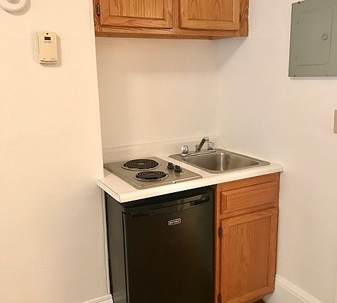 HARDWOOD FLOORS AND A BAY WINDOW OVERLOOKING BEACON STREET. PLENTY OF CLOSET SPACE. SPACIOUS BATHROOM WITH CERAMIC TILE AROUND THE BATHTUB. NEW KITCHEN CABINETS, A SINK, TWO BURNERS AND AN UNDER THE COUNTER REFRIGERATOR.
