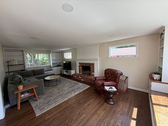 Brick-surround gas fireplaceCustom built-insLarge level backyardNewly installed heat pumpLower-level rec roomFully remodeled kitchenRenovated bathrooms