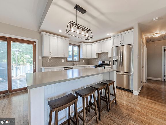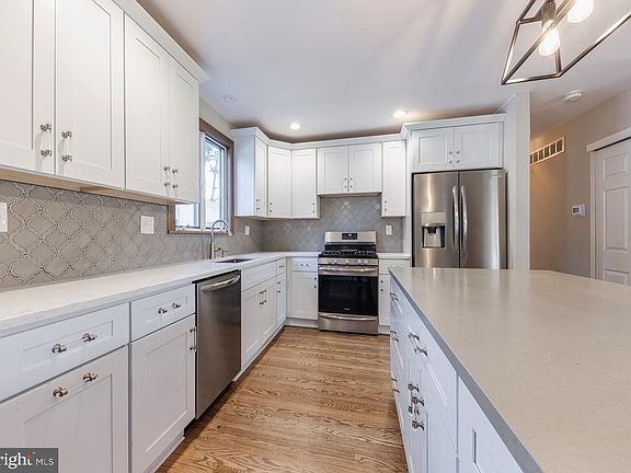 Welcome to this Spacious Raised Ranch. 3 bedrooms & 1 Bathroom on the main level. Den w/ Brick Fireplace. 2 BONUS ROOMS on the lower level along w/ a Full Bath. Features include Beautiful Newer Kitchen w/ White Cabinets, Stainless Steel Appliances, Tiled Backsplash, Quartz Countertops, Huge island with seating for 4 stools. Hardwood Floors in the kitchen, Dining room, hallway & under the carpets in the 3 bedrooms. Barn Door leads to the Huge Family Room w/ Vaulted ceilings & Wood-burning Stove, Large laundry room. Sliding Glass door to the backyard oasis.. which includes an In-ground Pool, Plenty of Patio space around the pool, Deck, Hot Tub, Shed, White Vinyl Fenced in Yard, and 1 car detached Garage. Although the home is in great condition, it's being sold As Is. Seller will provide the C/O. Close to major highways and Philadelphia!