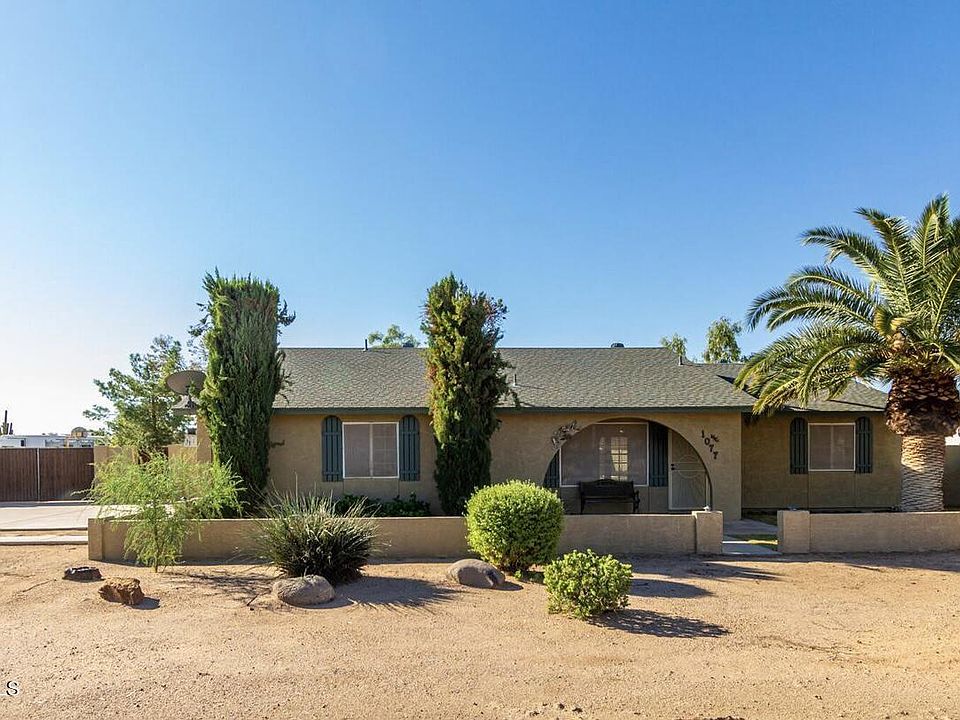 Upgraded 3 bedroom home on huge nearly 1/2 acre lot with beautiful Mountain views! Property in great shape! New AC unit 2020! Vinyl Dual Pane windows! New exterior paint 2021! Kitchen has corian cabinets, painted cabinets with hardware, undermount sink, new stainless steel stove & microwave 2020, pantry & RO system! Tile floors throughout entire home except for bedrooms! Decorative ceiling rafters in living area! 2 skylights! Ceiling fans in all rooms! Surround sound in living areas & master! Master walk in closet & separate exit to outside! Garage cabinets! Water Softener! Huge 18,001 SF lot has large extend patio, RV gate & RV parking area, grassy area with automatic sprinklers & plenty of space for a pool, RV garage or shop or whatever you want! Quiet neighborhood close to US 60 freeway!