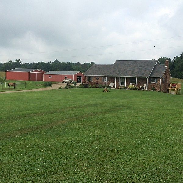 Beautiful brick home overlooking a spectaculr pond with 20 acres of wooded and farmable land. Cape Cod structure with 3 bedrooms, 2 baths, 2 large livng rooms, large kitchen and dining room and full basement. The house has 3 water sources: cistern, well and public - also 3 heat types: heat pump, elec furnace and wood burner. Many upgrades recently which include: new shingles, siding, shutters, flooring and more. Outside ammenities include: 30x40 pole building, 24x32 pole building, nice stocked pond, pasture area, hayfields and great wooded area for hunting. Property does have clear title on mineral rights and they will transfer to the buyer. Additional property info: http://www.forsalebyowner.com/listing/3-bed-Single-Family-home-for-sale-by-owner-1077-McCoy-Ridge-Rd-43787/24035736?provider_id=28079