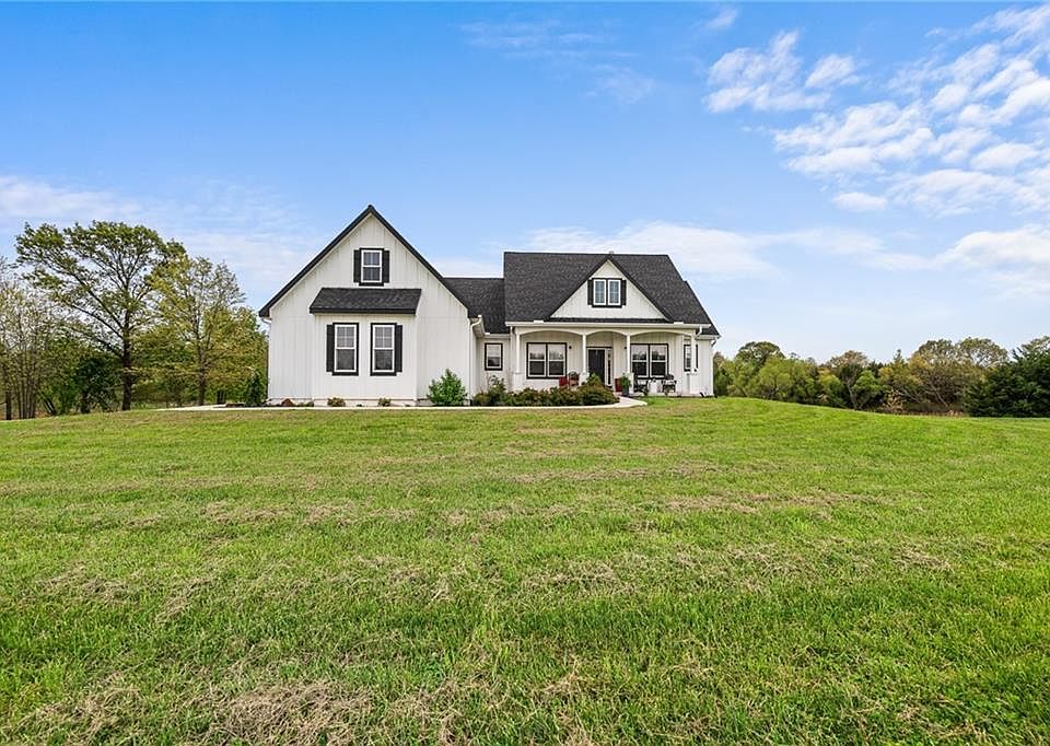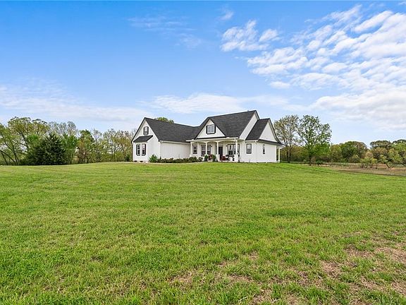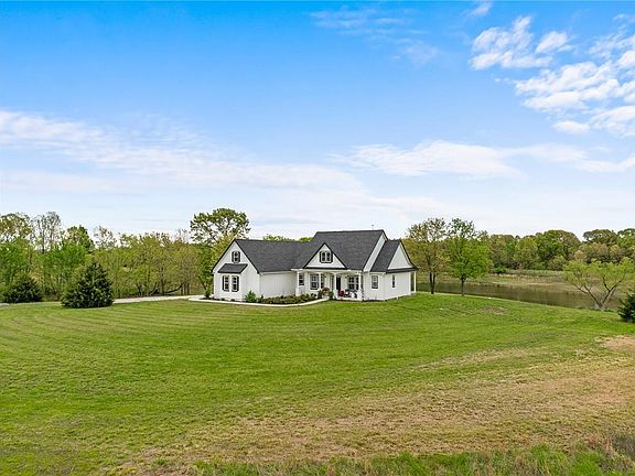 Nestled in this picturesque community is a lovely farmhouse, only three years old, perfectly situated on 20 rolling acres with a fully stocked pond. This 3-bedroom, 2.5 bath home features an open concept layout, ideal for modern living with sweeping views and room to breathe. The large primary bathroom and walk-in closet are standout bonuses. The bath features a large walk-in shower, jetted tub, double vanities and separate water closet, offering comfort and functionality in a private retreat. The eat-in kitchen is lovely with white cabinets and stainless steel appliances with an island for additional seating which is all open to the family room and its cozy woodburning stove. The expansive windows not only provide great light but beautiful panoramic views of the land and the pond. There is a very inviting front porch as well as a nice back porch for relaxing and soaking up the beautiful views and enjoying the peace and quiet. There is tremendous expansion potential. The large loft space is already stubbed for a bathroom and wired for a mini-split, making it a marvelous opportunity for a private guest suite or additional living space, the possibilities are endless. The unfinished basement with tall ceilings is also stubbed for a bath, with two framed-in windows that would provide wonderful daylight - offering even more possibilities for creating additional living space. The pond has produced some impressively large fish, making it the perfect spot for leisurely casting a line. And with abundant wildlife, including plenty of turkey and deer, the land also offers exciting hunting opportunities for the outdoor enthusiast. The property also features walking trails and a stream running along the back, adding even more natural beauty and recreational potential to the land. There are also two additional 10-acre parcels (1 to the east and 1 on the west) that are also available for purchase and are Douglas County certified buildable lots.