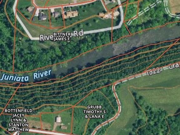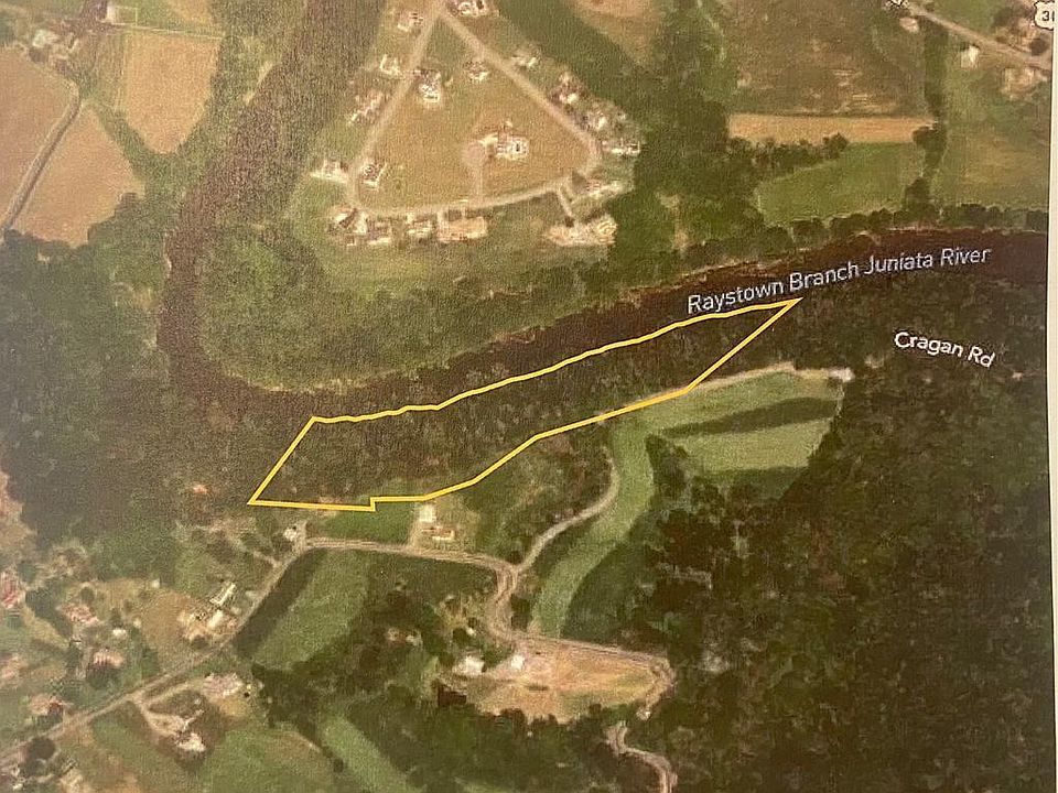 This wooded, 9.54 ac parcel sits elongated on Cragan Road with panoramic views in the Fall of the Appalachian Mountains and the winding Juniata River. Enjoy 900' of water frontage for fishing or canoeing. Steep cliff side hides many wildlife and provides great hunting. At the top of the parcel is room for building a cabin and parking. An old cabin already on the property is worn down and uninhabitable, but provides a foundation for a future build. Quiet and peaceful, this is desirable for any outdoor enthusiast.