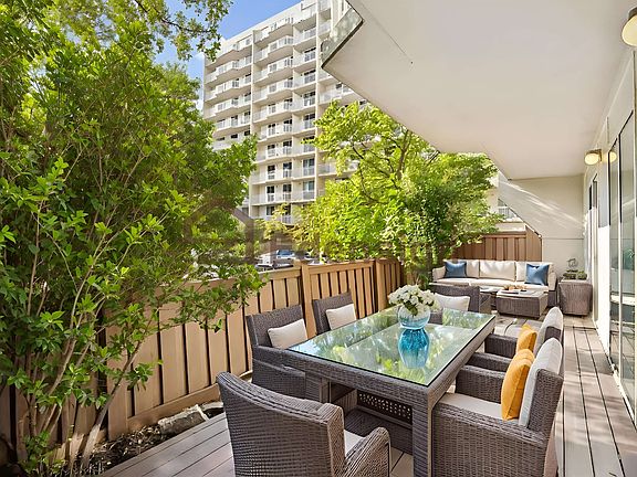 Welcome to Townhouse 5 at Admirals Walk, an elegant waterfront condominium community. This beautifully renovated 1-bedroom, 1.5-bath residence offers a spacious layout with brand-new hardwood floors, a sleek modern kitchen, and upgraded baths. Step outside to your expansive private patio, perfect for entertaining or relaxing outdoors. From the kitchen, enjoy a partial river view, adding a touch of NYC skyline charm to your everyday living. Admirals Walk is a full-service community featuring a fitness center, outdoor pool with breathtaking Hudson River and Manhattan views, tennis and basketball courts, a community pavilion for events, and a picnic area. Convenience is unmatched, just a short walk to the NYC ferry and bus, making commuting seamless. This home combines lifestyle and location, a rare opportunity to experience waterfront living at its finest. Disclaimer: Images are virtually staged to help showcase the property's potential.