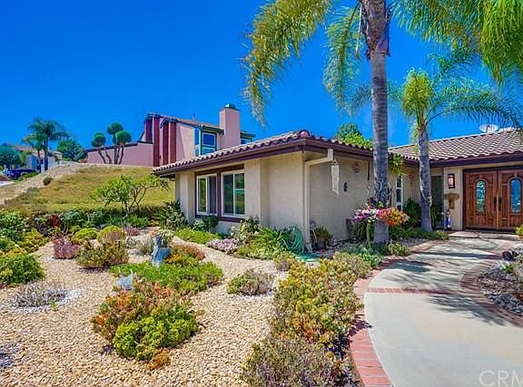 Elegance in Tarragona! From the enchanting and inviting beautiful entry to the delightful lushly landscaped backyard with beautiful gardens and fruit trees and flagstone patios, this gorgeous updated home is perfect in every exquisite detail! ONE-LEVEL with FOUR bedrooms, family room,10,078 SF lot, and views! The open floor plan with VAULTED ceilings is beautifully updated including new windows, all new doors, light fixtures, custom closets with organizers, remodeled bathrooms, Toto bidet toilets, ceiling fans, and an elegant custom fireplace in the living room! Newer furnace, newer tile roof, and CENTRAL A/C. Also, a Ring doorbell, patio lights that can be controlled by Alexa...and so much more! The spacious primary bedroom has convenient pocket doors to the walk-in closet and to the bath, and the sliding glass door opens to a flagstone patio and large private yard. The LUXURIOUS master bath has a HUGE shower and two sinks. The THREE-CAR garage has a sparkling epoxy floor, great additional storage areas, PLUS a new large garage pantry. Fruit bearing trees include orange, mango, avocado, lime, Thai lime, dragon fruit, guava, apple, lemon and Meyer lemon! There are beautiful flowering gardens and an herb garden. Lovely patio areas are ready for the barbeques and summer parties! Definitely turn key!