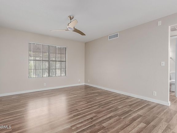 Fantastic opportunity to own this charming 2-bedroom unit in River Park Villas! Discover a serene living room with a soothing palette, blinds, and stylish wood-look flooring for a timeless appeal. The eat-in kitchen boasts granite counters, crisp white cabinets, stainless steel appliances, and a peninsula with a breakfast bar for quick meals. The main bedroom features an attached private bathroom for added privacy. Conveniently located close to ASU, Tempe Town lake, entertainment, restaurants, parks, and downtown Tempe. Don't miss out on this one!