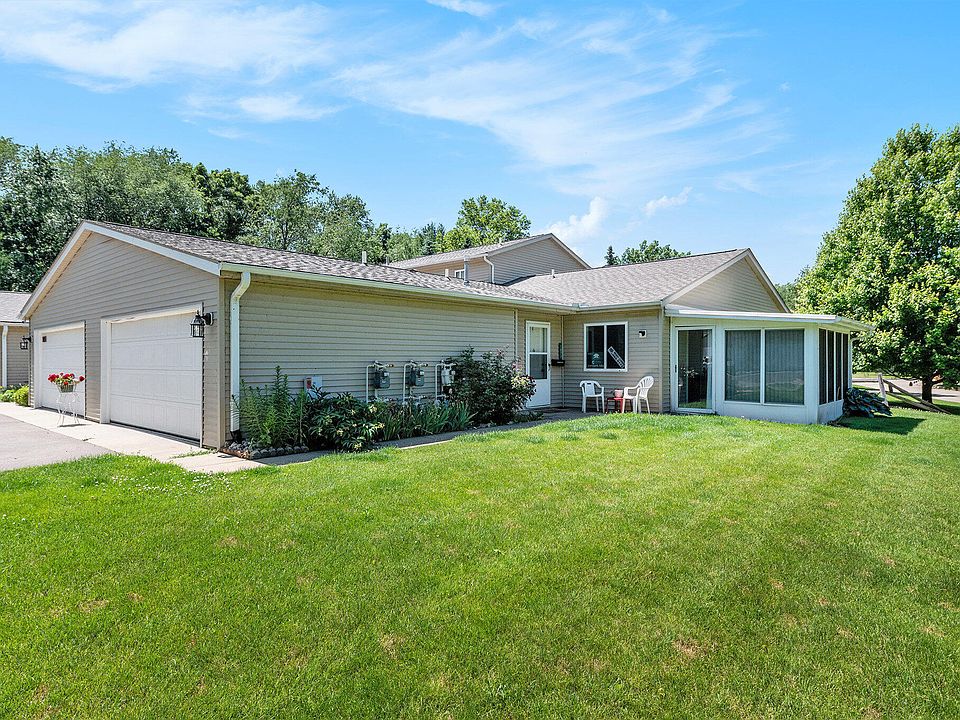 Enjoy carefree living in Plainwell's highly desired Wedgewood condominium community. This end unit on a corner lot overlooks the gazebo in the court yard. Imagine yourself in the spacious 1200 sq ft. Ranch style home with galley style kitchen open to the ample dining area and large living room which has sliders to the carpeted 3 season room. Huge primary bedroom offers 2 double closets. 1 1/2 baths on the main floor with the full bath offering a whirlpool tub. The basement is one big open room with approximately 2/3 of it carpeted giving a head start to a family room! Plus there's a stool & sink in place for that extra 1/2 bath to be completed. 2 car attached garage and lovely yard with beautiful flowers lovingly tended by prior owner. Kitchen appliances included at $230,000.