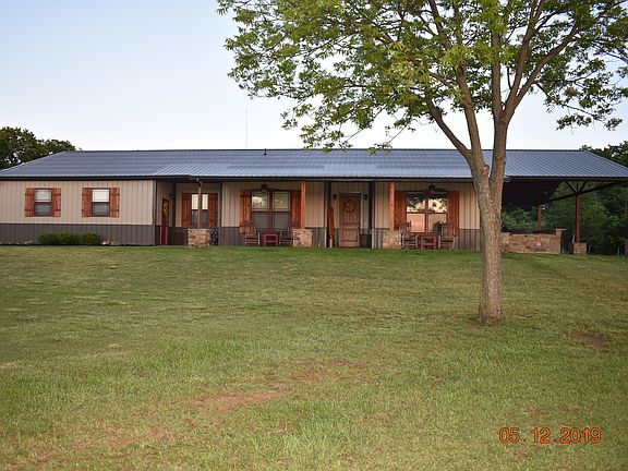 Country living at its finest! This beautiful home is nestled back down a gravel driveway on 26.68 acres over looking a gorgeous pond. This is a 2,344 sqft custom metal home with 3 bed/office/2 bath/ single 315 sqft garage and a 24x24 detached car port. House includes 800 sqft covered back porch with outdoor kitchen shell and a 400 sqft covered front porch. Many extras include granite countertops throughout, all ceramic tile flooring, vaulted ceilings in great room, gas ventless fireplace, HUGE pantry,HUGE master closet, the whole house is handicap accessible and much more… The property also has a 30x50 clear span shop with 16 ft walls. The shop has heat and a/c, bathroom, washer/dryer hookups and a loft with overhead doors on both ends. There is a storm cellar, chicken coop and more! The property is being sold together as a whole, but was purchased in 3 different tracts (2 – 10 acres tracts and the house sits on a 6.67 acre tract). There is an older home at the entrance to the property that could possibly be lived in if someone desired, our plan was to demo but haven’t gotten to it. We only value the land it sits on!