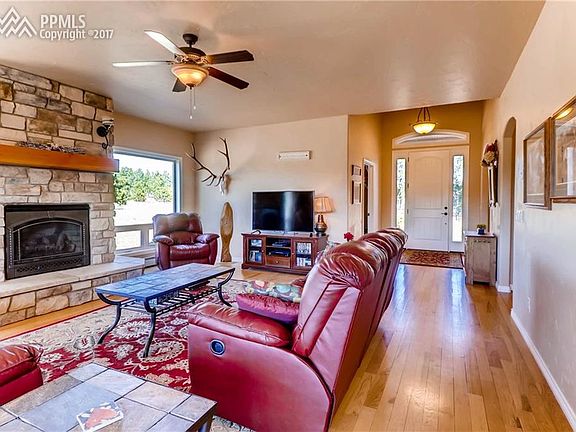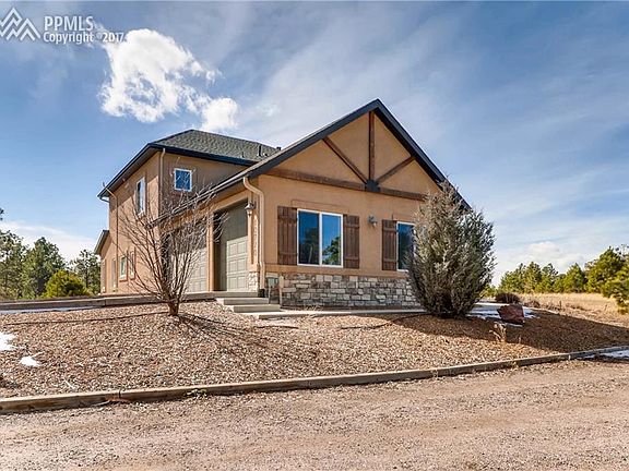 Absolutely stunning, stately two story home in Black Forest Estates. Located just minutes from Colorado Springs, this 5 acre parcel with huge Ponderosa, grassy meadow, and Pikes Peak views, end of culdesac in small subdivision tucked away from city hustle. Over 3,700 sf above grade with a framed in walkout basement, this 4 bedroom, 4 bath home plus office, formals, upstairs family room, 3 car garage is perfect for busy people yearning for country charm yet elegant housing. You feel "a world away" as enter the drive! Beautiful entry awaits you as you come into the home with hardwood and tile flooring throughout with the exception of the upstairs family room (possible 5th bedroom). Main level office plus a formal, great room with huge windows overlooking the trees and total privacy to the back. Colorado style stone fireplace for cozy nights plus a cook's kitchen and nook. A formal dining with coffered ceilings completes the living areas. The master retreat also features the large windows with nature flowing in, 5-piece master along with a large walk in closet. Upstairs are 3 bedrooms with 1 as an ensuite plus a family room with another stone fireplace and a perfectly framed Pikes Peak view. Another full bath plus a study or rec area completes the upper level. The walk out basement is fully framed and ready for completion or left as workshop! Other features include hand textured walls, radon mitigation, water softener, casement windows, architectural niches and arches. The home exudes quality construction and materials plus personal, designer touches. This, along with the prime location and you have yourself a Black Forest winner!