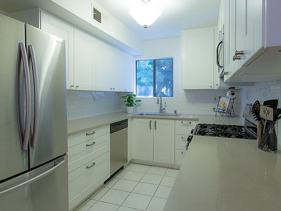 Beautifully remodeled, quiet townhouse in Woodley Village. Located in the middle of the complex, away from all noise, this 2-Bedroom townhouse is flooded with natural light and features high vaulted ceilings, 2 spacious bedrooms, remodeled kitchen, remodeled bathroom, newer closets (including a Master Walk-in closet), dining area, private balcony, private laundry room, and a two-car private attached garage with lots of storage. Upgrades include a new bright kitchen with subway-tile backsplash and a water-filtration system, fully remodeled bathroom and master vanity, freshly painted, new carpet, decorated children's room, and surround sound system in the living room. The well maintained community has had many upgrades, including a new roof (July 2020), siding, exterior paint, landscaping, and deck/balcony replacements. Other amenities include a resort-style pool, tennis court, and a beautiful grassy dog run. Conveniently located close to shops, grocery stores, and nearby access to the freeway.